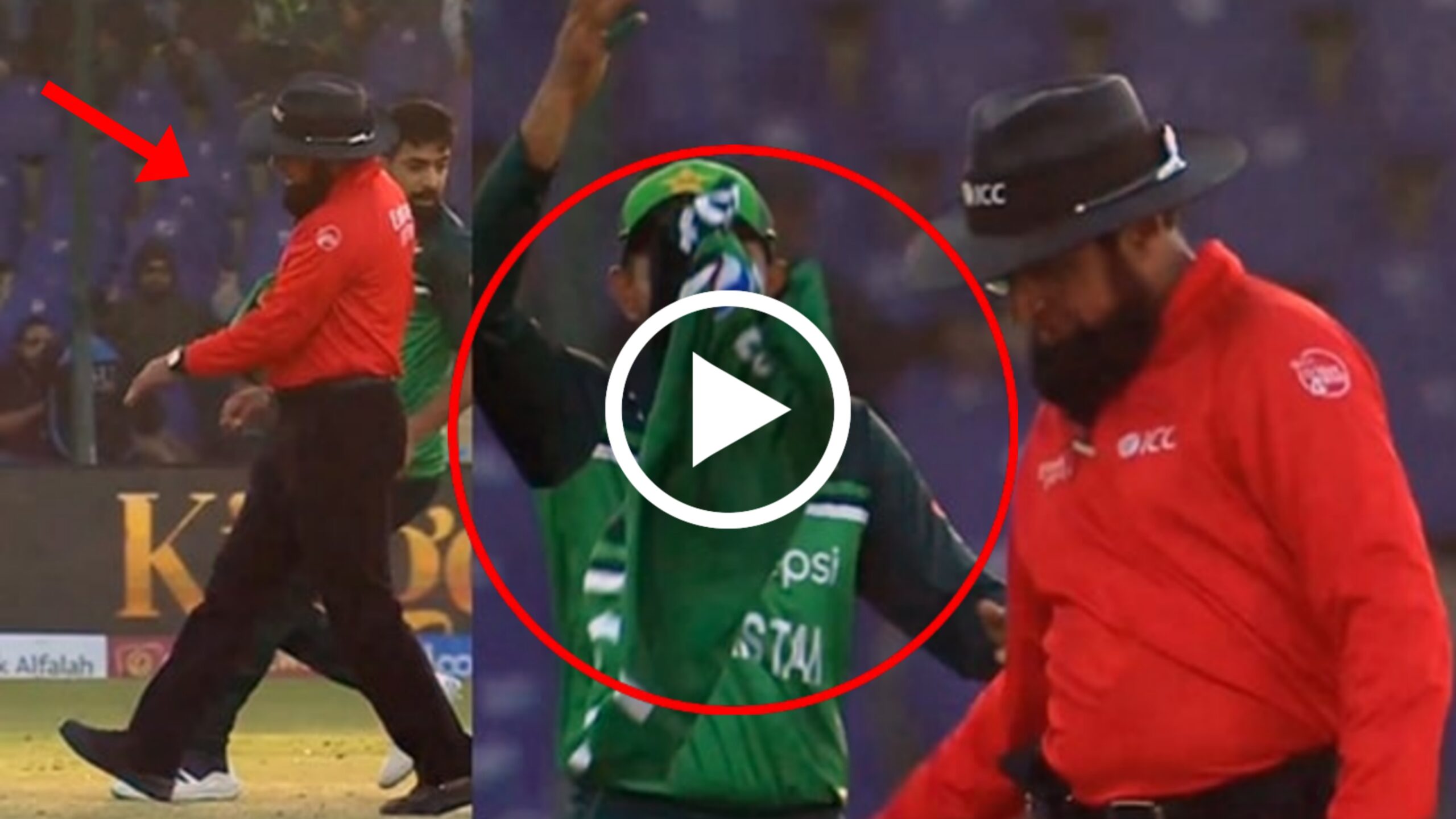 36ನೇ ಒವರ್ನಲ್ಲಿ ಹ್ಯಾರಿಸ್ ರೌಫ್ ಅವರು ಎಸೆದ ಬಾಲಿಗೆ ಗ್ರೀನ್ ಫಿಲಿಪ್ಸ್ ಡೀಪ್ ಸ್ಕ್ವೇರ್ ಲೆಗ್ ಗೆ ಬಾರಿಸಿದ ಚೆಂಡು ಮೊಹಮ್ಮದ್ ವಸೀಮ್ ಅವರು ಫೀಲ್ಡ್ ಮಾಡಿ ಎಸೆದಾಗ ಆ ಚಂಡು ನೇರ ಅಂಪಾಯರ್ ಆದ ಅಲೀಮ್ ದಾರ್ ಅವರ ಕಾಲಿಗೆ ಜೋರಾಗಿ ಬಡಿಯಿತು. ತದನಂತರ ಅಲೀಮ್ ದಾರ್ ಅವರು ನೋವನ್ನು ತಾಳಲಾಗದೆ ಬೌಲರ್ ನ ಟಿ-ಶರ್ಟ್ ಸಿಟ್ಟಿನಿಂದ ನೆಲಕ್ಕೆ ಬೀಸಿ ಒಗೆದರು. ಆನಂತರ ಮಾತ್ರ ಪಾಕಿಸ್ತಾನದ ಆಟಗಾರರು ಅಂಪೈರ್ ಅವರ ಸಿಟ್ಟನ್ನು ನೋಡಿ ಶಮನಗೊಳಿಸಲು ಯತ್ನಿಸಿದರು.