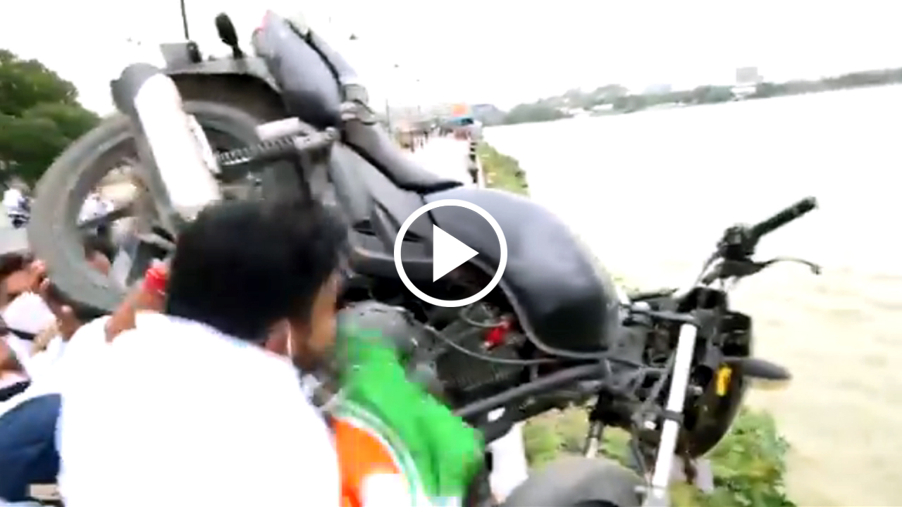 VIDEO : ಅದೇನ್ ತಲೆ ಕಣ್ರಿ ಇವರದು, ಪೆಟ್ರೋಲ್ ಬೆಲೆ ಏರಿಕೆ ಖಂಡಿಸೋಕೆ ಬೈಕ್ ತಗೊಂಡು ಹೋಗಿ ಹೊಳೆಗೆ ಹಾಕೊದಾ!? ವಿಡಿಯೊ ನೋಡಿ
