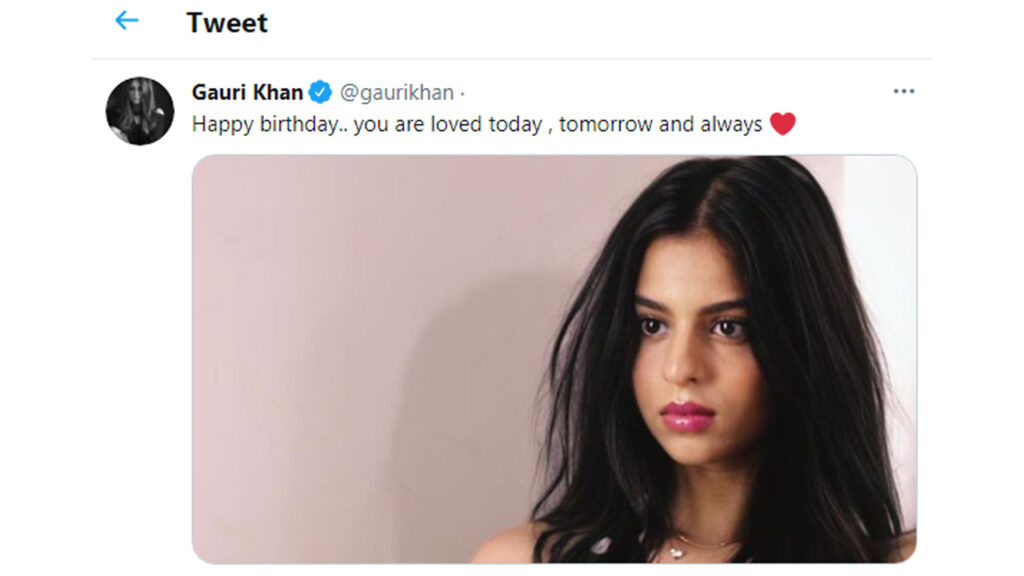 ಅಸಲಿಗೆ ನಡೆದ ವಿಷಯ ಏನೆಂದರೆ, ಮಗಳ ಹುಟ್ಟುಹಬ್ಬದ ಹಿನ್ನೆಲೆಯಲ್ಲಿ ಶಾರುಖ್ ಖಾನ್ ಅವರ ಪತ್ನಿ ಗೌರಿ ಖಾನ್ ತಮ್ಮ ಟ್ವಿಟ್ಟರ್ ಖಾತೆಯಲ್ಲಿ ಮಗಳ ಸುಂದರವಾದ ಫೋಟೋವನ್ನು ಶೇರ್ ಮಾಡಿಕೊಂಡು, ತಮ್ಮ ಮಗಳಿಗೆ ಜನ್ಮದಿನದ ಶುಭಾಶಯಗಳನ್ನು ತಿಳಿಸಿದ್ದಾರೆ.