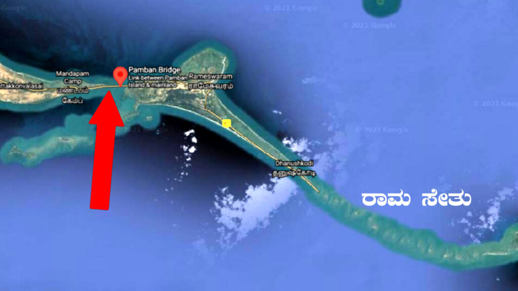 ಈ ಧನುಷ್ಕೋಡಿ ನಗರದಲ್ಲೇ ರಾವಣನ ತಮ್ಮ ವಿಭೀಷಣ ಶ್ರೀರಾಮನಿಗೆ ಶರಣಾಗಿ ಸೀತಾ ಮಾತೆಯನ್ನು ಬಿಡಿಸಿ ನೆರವಾಗುವುದಾಗಿ ವಾಗ್ದಾನ ಮಾಡುತ್ತಾನೆ.  ರಾವಣನೊಂದಿಗಿನ ಯುದ್ಧ ಮುಗಿದ ಬಳಿಕ ವಿಭೀಷಣನನ್ನು ಶ್ರೀರಾಮ ಲಂಕಾದ ರಾಜನನ್ನಾಗಿಸಿದ. ನಂತರ ರಾಮಸೇತುವಿನ ಮೂಲಕ ಮತ್ಯಾರು ಲಂಕಾ ಮೇಲೆ ದಾಳಿ ಮಾಡಬಾರದು ಎಂದು ರಾಮಸೇತುವಿನ ಮೇಲೆ ಬಾಣ ಹೊಡೆದು ಕೆಳಗೆ ಕಳಿಸಿದನು. ಇಂದಿಗೂ ಆ ರಾಮಸೇತು 2-3 ಅಡಿ ಕೆಳಗೆ ಇದ್ದು ಯಾರಾದರೂ ನಿಂತರೆ ಸೊಂಟದವರೆಗೆ ನೀರಿದೆ.