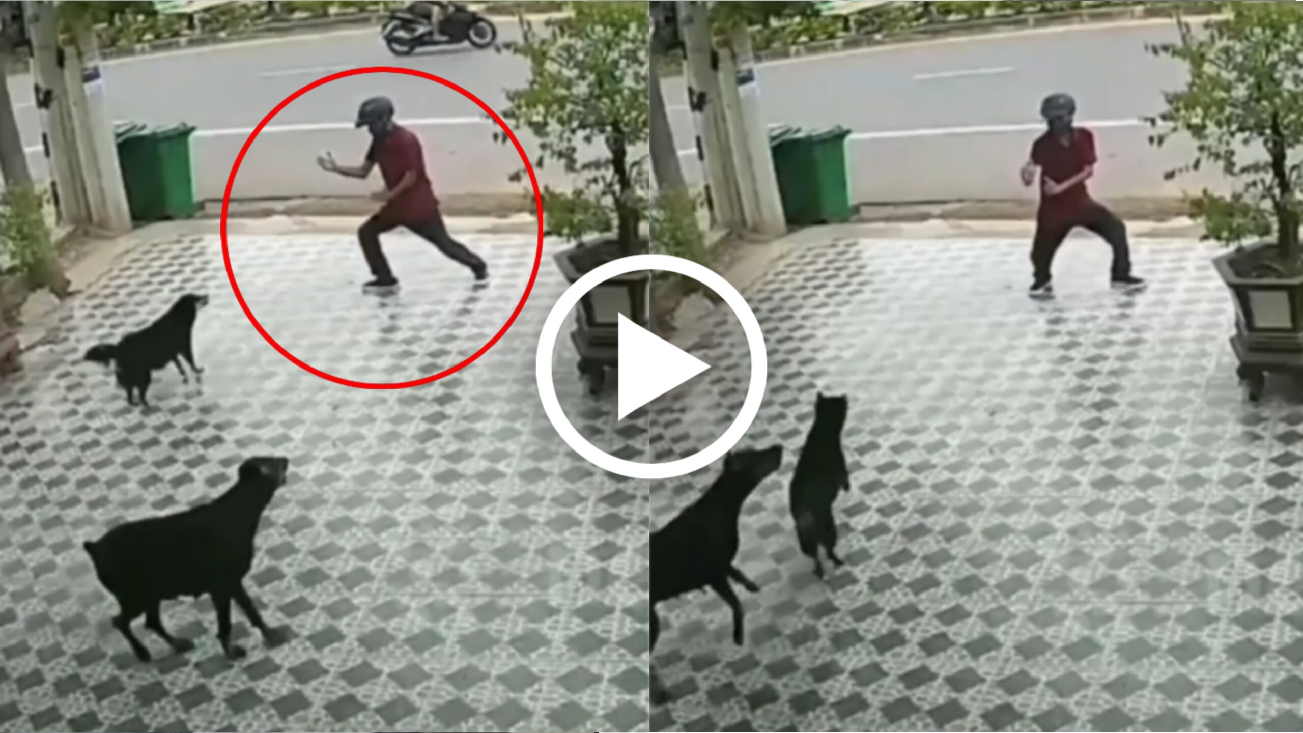 ಸದ್ಯ ಇಲ್ಲಿ ನೋಡುವ ವಿಡಿಯೋದಲ್ಲಿ ನಾಯಿಯಿಂದ ರಕ್ಷಿಸಿಕೊಳ್ಳುವುದು ಹೇಗೆ? ಇದಕ್ಕೆ ತುಂಬಾ ಒಳ್ಳೆಯ ಸೊಲ್ಯೂಷನ್ ಒಂದನ್ನು ಯುವಕನೊಬ್ಬ ತೋರಿಸಿದ್ದಾನೆ. ವಿಡಿಯೋದ ದೃಶ್ಯದಲ್ಲಿ ಕಂಡುಬರುವಂತೆ ಯುವಕ ತನ್ನಷ್ಟಕ್ಕೆ ತಾನು ಒಂದು ಮನೆಯ ಮುಂದಿನಿಂದ ಹೋಗುತ್ತಿರುತ್ತಾನೆ. ಆ ಸಂದರ್ಭದಲ್ಲಿ ಆತನ ಮೇಲೆ ಎರಡು ಪುಂಡನಾಯಿಗಳು ಹಾಠಾತ್ ಅಕ್ರಮಣ ಮಾಡುತ್ತವೆ.