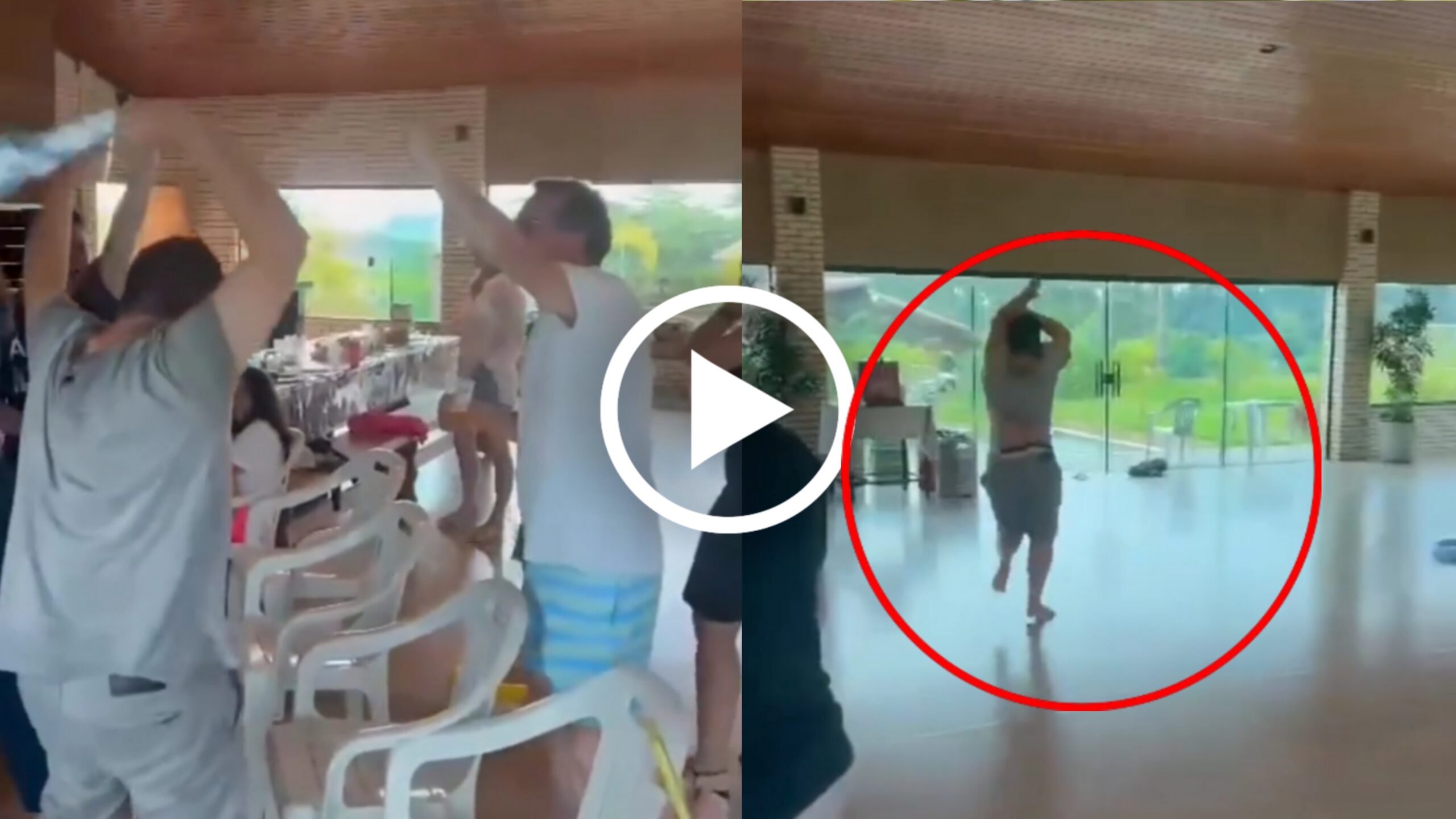 ಸದ್ಯ ಅರ್ಜೆಂಟಿನ ತಂಡದ ಫ್ಯಾನ್ ಒಬ್ಬ ಅರ್ಜೆಂಟೀನಾ ತಂಡವು ವರ್ಲ್ಡ್ ಕಪ್ ಗೆದ್ದ ನಂತರ ಖುಷಿಯಲ್ಲಿ ಫುಲ್ ಔಟ್ ಆಫ್ ಕಂಟ್ರೋಲ್ ಆಗ್ಬಿಟ್ಟಿದ್ದಾನೆ. ಆತನ ಸಂತೋಷಕ್ಕೆ ಎಲ್ಲೆಯೇ ಇಲ್ಲದಂತಾಗಿರುವ ಹಾಗೆ ಕಂಡುಬರುತ್ತದೆ. ಇದೇ ಸಂತೋಷದ ಭರದಲ್ಲಿ ಆತ ಒಂದು ಅ#ನಾಹುತವನ್ನು ಮಾಡಿಕೊಂಡಿದ್ದಾನೆ. ಈ ಕ್ರಿಕೆಟ್ ಫ್ಯಾನ್ ನನ್ನ ಫೇವರೆಟ್ ತಂಡ ಅರ್ಜೆಂಟೀನಾ ವರ್ಲ್ಡ್ ಕಪ್ ಗೆದ್ದ ನಂತರ ಸಂತೋಷದ ಭರದಲ್ಲಿ ಮೈ ಮೇಲಿನ ಟೀ ಶರ್ಟ್ ತೆಗೆದು ನಾಗಾಲೋಟದಲ್ಲಿ ಸ್ವಿಮಿಂಗ್ ಪೂಲ್ ಕಡೆಗೆ ಓಡಿದ್ದಾನೆ. ದೊಡ್ಡದಾದ ಹಾಲ್ ಗೆ ಅಳವಡಿಸಿದ ಗೇಟು ಸಂಪೂರ್ಣವಾಗಿ ಪಾರದರ್ಶಕ ಗಾಜಿನದ್ದಾಗಿರುವ ಕಾರಣ ಆತನಿಗೆ ಆನಂದದ ಭರದಲ್ಲಿ ಅದು ಕಾಣಿಸಲೇ ಇಲ್ಲ, ಅಥವಾ ಅದು ಆತನ ದೃಷ್ಟಿಗೆ ಬಿದ್ದಿಲ್ಲ. ಸಹಜವಾಗಿ ತೆರೆದ ಬಾಗಿಲೇ ಇರಬೇಕೆಂದು ನಾಗಾನೋಟದಲ್ಲಿ ಓಡಲು ಹೋಗಿ ಗಾಜಿಗೆ ಜೋರಾಗಿ ಡಿಕ್ಕಿ ಹೊಡೆದು ಅಲ್ಲಿಯೇ ಬಹುಶಃ ಪ್ರಜ್ಞೆ ತಪ್ಪಿ ಬಿದ್ದಿದ್ದಾನೆ.