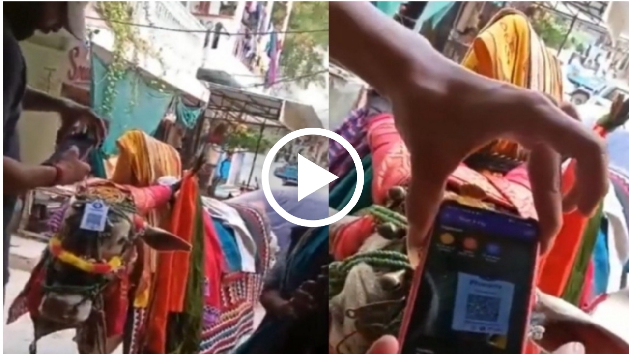 ಈ ವೀಡಿಯೊದಲ್ಲಿ, ಒಬ್ಬ ವ್ಯಕ್ತಿಯು ತನ್ನ ಸ್ಮಾರ್ಟ್ಫೋನ್ನೊಂದಿಗೆ ನಂದಿಯ ಹಣೆಯ ಮೇಲೆ ಯುಪಿಐ ಕೋಡ್ ಅನ್ನು ದೇಣಿಗೆಗಾಗಿ ಸ್ಕ್ಯಾನ್ ಮಾಡುತ್ತಿರುವುದನ್ನು ಕಾಣಬಹುದು.