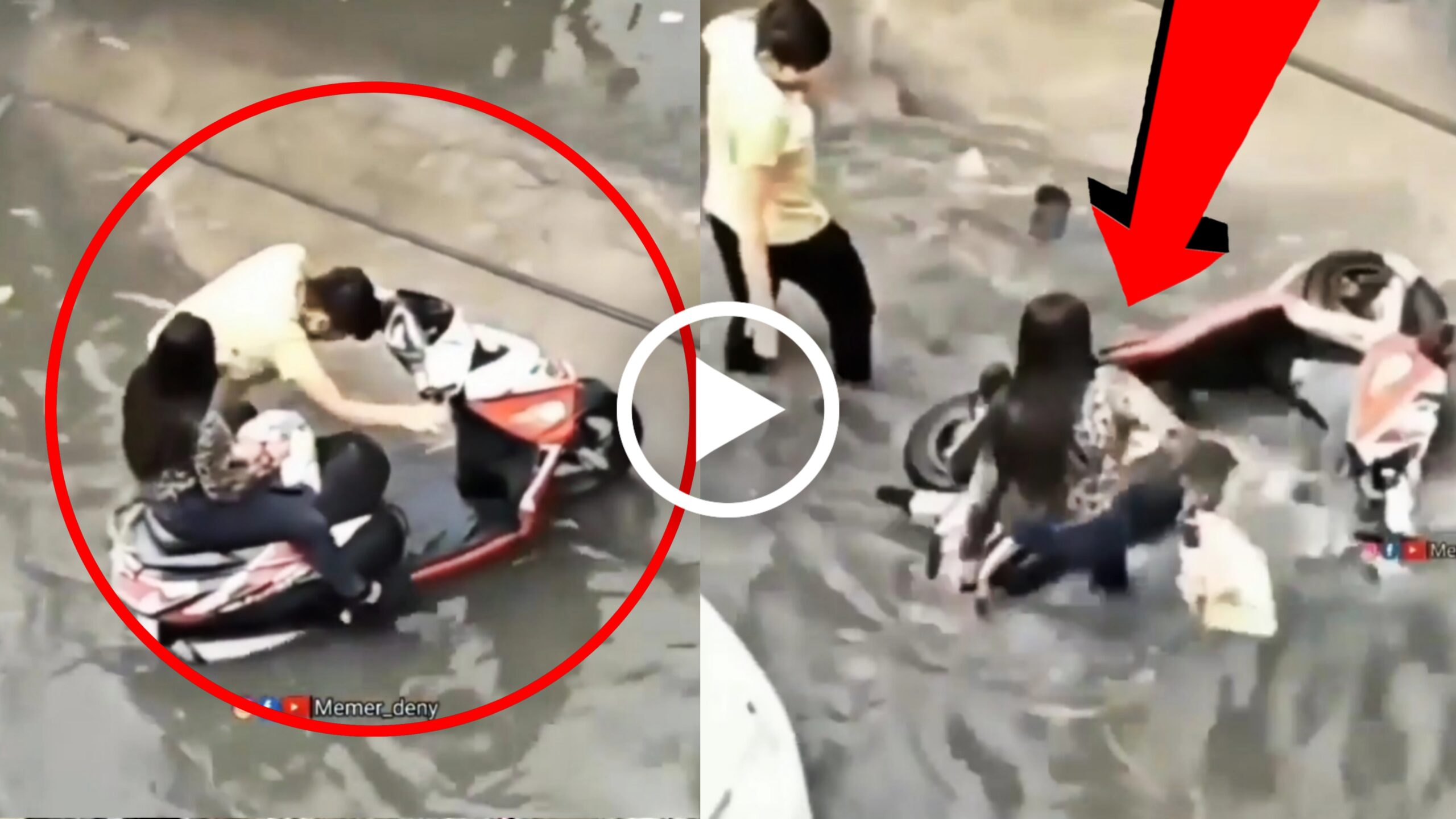 ಪ್ರಸ್ತುತ ವಿಡಿಯೋದಲ್ಲಿ ಗರ್ಲ್ ಫ್ರೆಂಡ್ ಮತ್ತು ಬಾಯ್ ಫ್ರೆಂಡ್ ಇಬ್ಬರು ಜೋಡಿಯಾಗಿ ಸ್ಕೂಟಿ ಮೇಲೆ ನಡೆದಿದ್ದರು. ಆದರೆ ದಾರಿ ಮಧ್ಯೆ ಮಳೆಯಿಂದಾಗಿ ರಸ್ತೆಯ ಮೇಲೆ ನಿಂತ ನೀರಿನಲ್ಲಿ ಸಿಕ್ಕಿ ಬೀಳುತ್ತಾರೆ. ಅಲ್ಲಿ ನಡೆದ ದೃಶ್ಯ ನೋಡಿದ ನಂತರ ನಗುತಡೆಯುವುದು ಅಸಾಧ್ಯವಾಗುತ್ತದೆ. ಕಾರಣ ರಸ್ತೆಯ ಮೇಲೆ ಎಲ್ಲಿ ಬೇಕಾದಲ್ಲಿ ನೀರು ನಿಂತಿದೆ. ಅದರಲ್ಲಿ ವಾಹನಗಳು ಹೋಗುವುದು ಬರುವುದು ಕಂಡು ಬರುತ್ತಿದೆ. ಅಂತದ್ದರಲ್ಲಿ ಇವರಿಬ್ಬರ ಸ್ಕೂಟಿ ನೀರಿನಲ್ಲಿ ಚಲಿಸುವುದನ್ನು ಬಿಟ್ಟು ಬಿಡುತ್ತದೆ. ಆಗ ಹುಡುಗ ಸ್ಕೂಟಿಯಿಂದ ಇಳಿದು ಹೇಗಾದರೂ ಮಾಡಿ ಸ್ಕೂಟಿಯನ್ನು ನೀರಿನಿಂದ ತೆಗೆಯಲು ಪ್ರಯತ್ನಿಸುತ್ತಿರುತ್ತಾನೆ. ಆದರೆ ಸ್ಕೂಟಿ ಮೇಲೆ ಕುಳಿತ ಹುಡುಗಿ ಮಾತ್ರ ಕೆಳಗೆ ಇಳಿಯಲು ತಯಾರಿಲ್ಲ. ಇದನ್ನು ನೋಡಿದ ಹುಡುಗ ತನ್ನ ಸಂಯಮ ಕಳೆದುಕೊಂಡು ಸ್ಕೂಟಿಯನ್ನು ನೀರಿನಲ್ಲಿ ಹುಡುಗಿ ಸಮೇತ ತಳ್ಳಿ ಬಿಡುತ್ತಾನೆ. ಆಗ ಹುಡುಗಿ ನೀರಿನಿಂದ ತುಂಬಿದ ರಸ್ತೆಯ ಮೇಲೆ ಡಮಾರ್ ಎಂದು ಬಿದ್ದು ಬಿಡುತ್ತಾಳೆ.