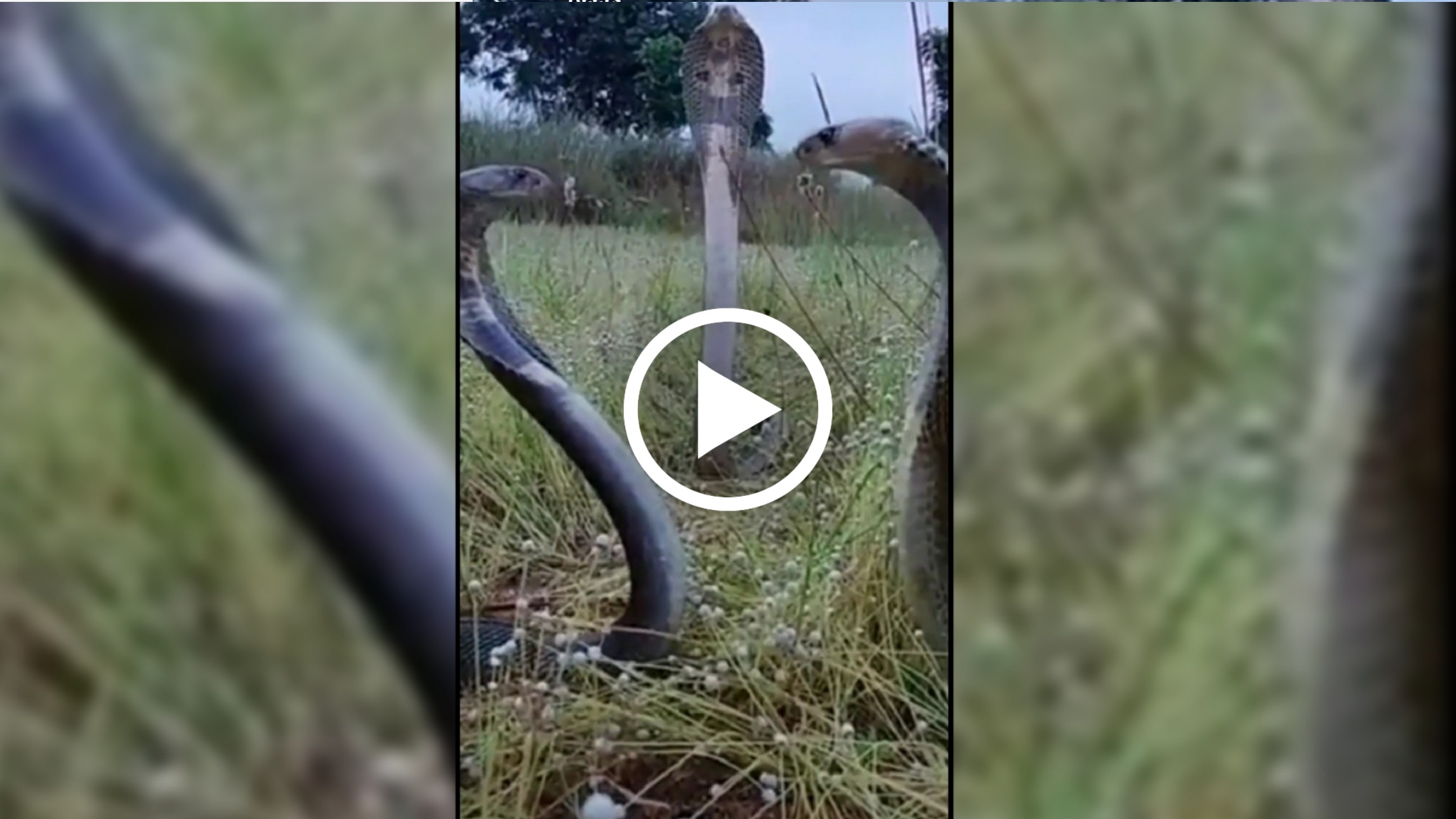 ಎಲ್ಲಾ ಮೂರು ಕಿಂಗ್ ಕೋಬ್ರಾಗಳು ಪರಸ್ಪರ ಸಿಟ್ಟಿನಿಂದ ನೋಡುತ್ತ ತಮ್ಮ ಹೆಡೆಯನ್ನು ಬಾನೆತ್ತರದಲ್ಲಿ ತೇಲಾಡುಸುತ್ತಿರುತ್ತವೆ. ಆದರೆ ಈ ಮೂರು ಹಾವುಗಳಲ್ಲಿ ಯಾವುದೇ ಹಾವು ಹ#ಲ್ಲೆ ಮಾಡುವದಿಲ್ಲ ಹೊರತಾಗಿ ಅವು ಯಾವುದೋ ಒಂದು ವಿಷಯದ ಕುರಿತು ತುಂಬಾ ಗಂ#ಭೀರವಾಗಿ ಚರ್ಚೆ ಮಾಡುತ್ತವೆ. ಈ ಹಾವುಗಳ ಚರ್ಚೆ ಮಾಡುವ ವೀಡಿಯೋ ಸದ್ಯಕ್ಕೆ ತುಂಬಾ ವೈರಲ್ ಆಗುತ್ತಿದೆ. ಮೂರು ಕಿಂಗ್ ಕೋಬ್ರಾಗಳ ಭೇಟಿಯ ವಿಡಿಯೋ ಸಾಮಾಜಿಕ ಜಾಲತಾಣಗಳಲ್ಲಿ ಕಾ#ಳ್ಗಿಚ್ಚಿನಂತೆ ಹಬ್ಬಲಾರಂಭಿಸಿದೆ. ‘ಹೆಲಿಕಾಪ್ಟರ್ ಜರ್ನಿ’ ಎಂಬ ಇನ್‌ಸ್ಟಾಗ್ರಾಮ್ ಖಾತೆಯಲ್ಲಿ ಈ ವೀಡಿಯೊವನ್ನು ಹಂಚಿಕೊಳ್ಳಲಾಗಿದೆ.