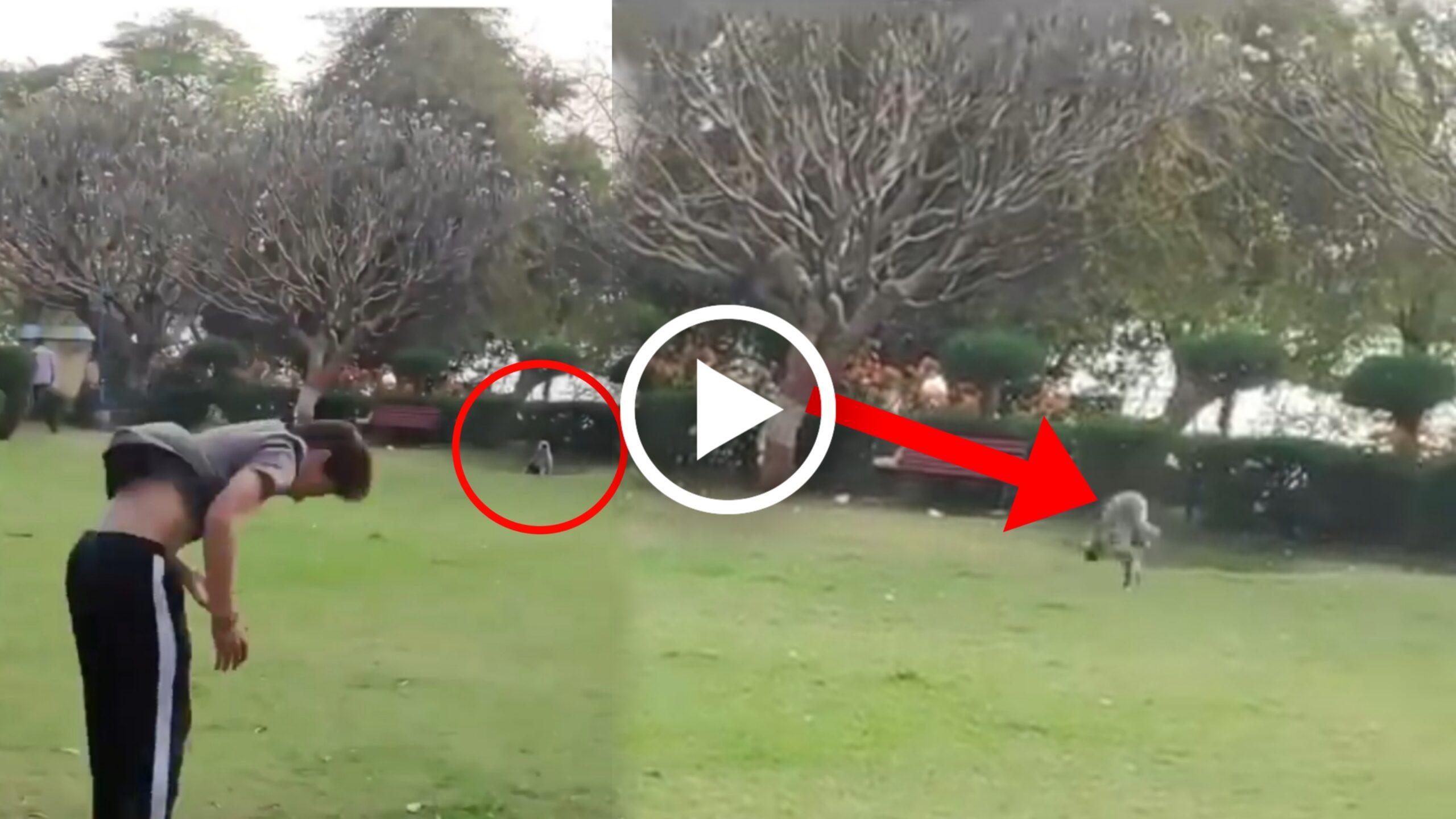 Video: ಯುವಕನ ಬ್ಯಾಕ್ ಫ್ಲಿಪ್ ಮಾಡುವದನ್ನು ಅನುಕರಣೆ ಮಾಡಿ ತಾನು ಬ್ಯಾಕ್ ಫ್ಲಿಪ್ ಮಾಡಿದ ಮಂಗ, ನಾನು ಎಲ್ಲದರಲ್ಲಿ ಕಡಿಮೆ ಇಲ್ಲ ಎಂದು ತೋರಿಸಿಕೊಟ್ಟ ಮಂಗ!!!!