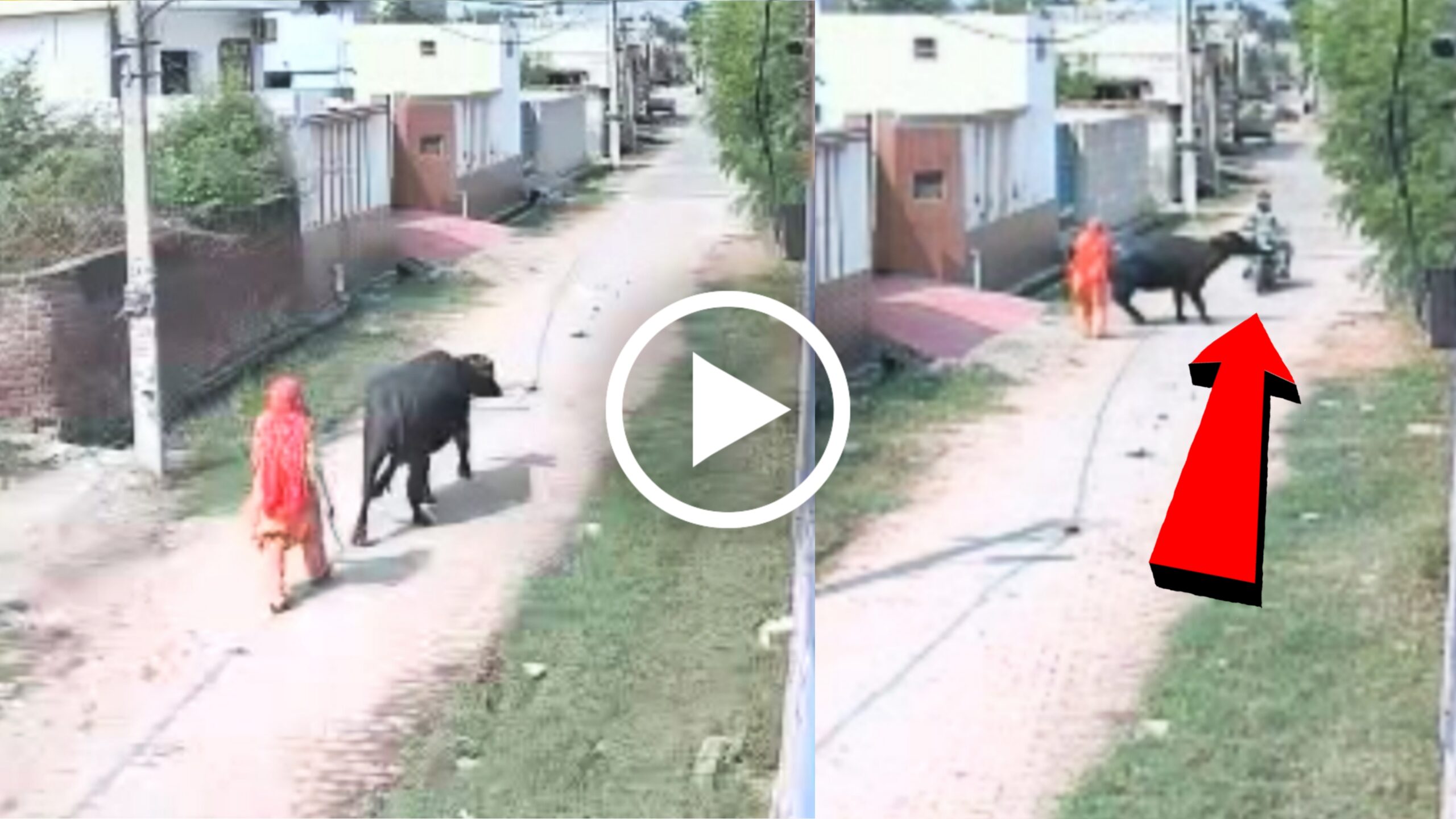 ಪ್ರಸ್ತುತ ವೈರಲ್ ಆಗುತ್ತಿರುವ ಈ ವೀಡಿಯೋದಲ್ಲಿ, ಒಂದು ನಗರದ ಬೀದಿಯಲ್ಲಿ ಒಬ್ಬ ಮಹಿಳೆ ಒಂದು ಎಮ್ಮೆಯನ್ನು ಕರೆದುಕೊಂಡು ತನ್ನಷ್ಟಕ್ಕೆ ತಾನು ಹೊರಟಿರುತ್ತಾಳೆ. ಸ್ವಲ್ಪ ದೂರ ಹೋಗುತ್ತಿದ್ದಂತೆಯೇ ಎದುರುಗಡೆಯಿಂದ ಒಬ್ಬ ವ್ಯಕ್ತಿ ಬೈಕ್ ತಗೆದುಕೊಂಡು ಬರುತ್ತಿರುತ್ತಾನೆ. ಅವನು ಬರುತ್ತಿರುವ ಸ್ಪೀಡ್ ನೋಡಿದರೆ ಸುಮಾರು 100 ಕ್ಕೂ ಹೆಚ್ಚು ಸ್ಪೀಡ್ ಇದ್ದಿರಬಹುದು ಎಂದು ಅನಿಸುತ್ತದೆ. ಆ ಬೈಕ್ ಈ ಮೂಕ ಪ್ರಾಣಿಯ ಎದುರು ವೇಗವಾಗಿ ಬರುತ್ತಿದ್ದಂತೆಯೇ ಭಯದಿಂದ ಎಮ್ಮೆ ಬೇರೆ ಕಡೆಗೆ ಹೋಗಬೇಕೆಂದು ರಸ್ತೆಯ ಮೇಲೆ ಮತ್ತೊಂದು ಬದಿಗೆ ಹೋಗಲು ಪ್ರಯತ್ನ ಪಡುತ್ತದೆ, ಅಷ್ಟರಲ್ಲಿ ವೇಗವಾಗಿ ಬರುತ್ತಿದ್ದ ವ್ಯಕ್ತಿಯ ಕಂಟ್ರೋಲ್ ತಪ್ಪಿ ಎಮ್ಮೆ ಆ ಬೈಕ್ ಸವಾರನಿಗೆ ಜೋರಾಗಿ ಡಿಕ್ಕಿ ಹೊಡೆಯುತ್ತದೆ. ಡಿಕ್ಕಿ ಹೊಡೆದೆ ತಕ್ಷಣವೇ ಬೈಕು ಒಂದುಕಡೆ ವ್ಯಕ್ತಿ ಒಂದು ಕಡೆ ಹೋಗಿ ಬೀಳುತ್ತಾನೆ.