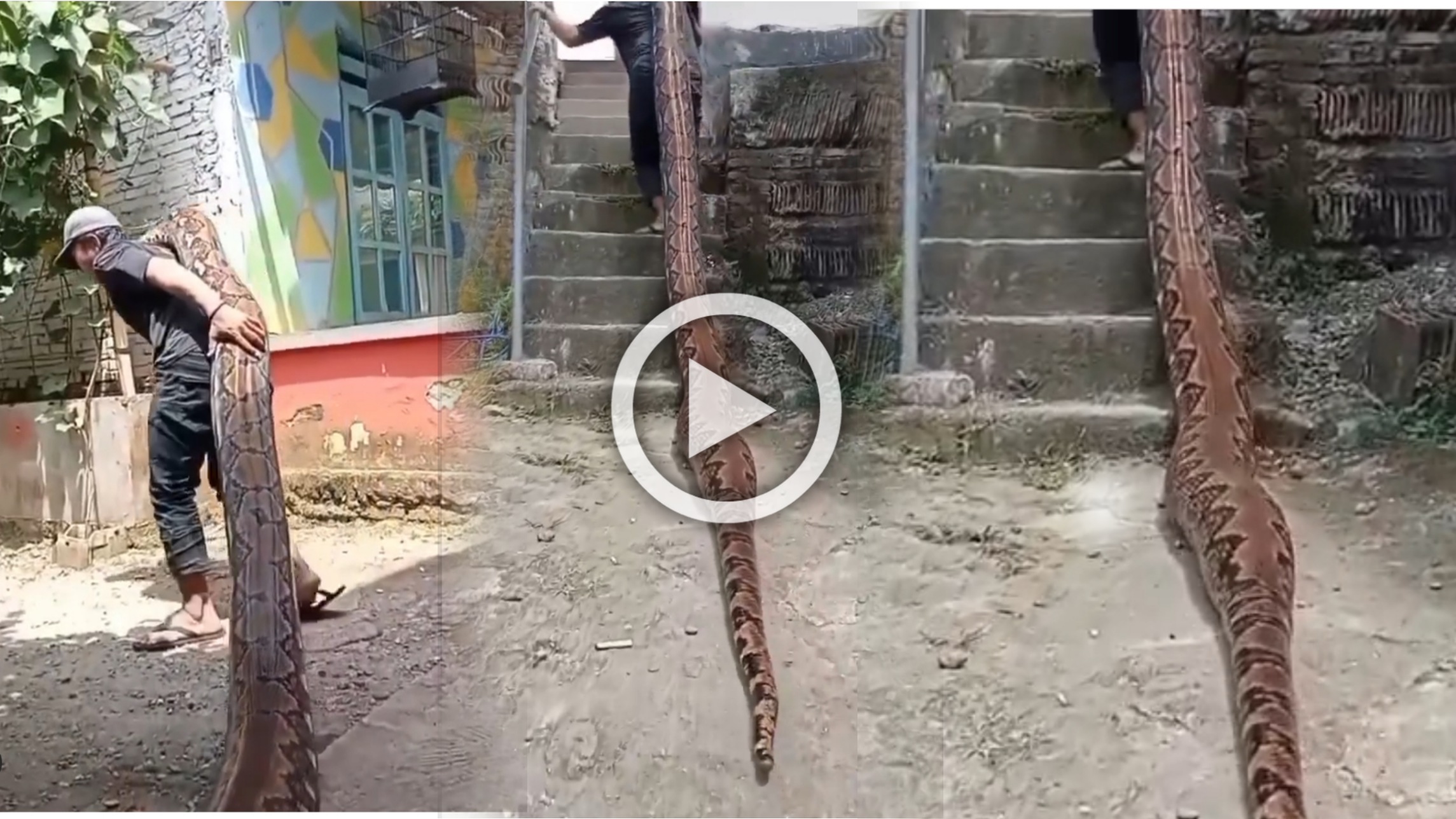 ವೈರಲ್ ವೀಡಿಯೊದಲ್ಲಿ, ಒಬ್ಬ ವ್ಯಕ್ತಿಯು ತನ್ನ ಭುಜದ ಮೇಲೆ ಭಾರವಾದ ಹೆಬ್ಬಾವನ್ನು ಹೊತ್ತಿರುವುದನ್ನು ನೀವು ನೋಡಬಹುದು. ಹೆಬ್ಬಾವು ಸುಮಾರು 15 ಅಡಿ ಉದ್ದವಿದೆಯಂತೆ. ವ್ಯಕ್ತಿ ತನ್ನ ಭುಜದ ಮೇಲೆ ಹೆಬ್ಬಾವಿನೊಂದಿಗೆ ಮೆಟ್ಟಿಲುಗಳನ್ನು ಹತ್ತುತ್ತಿರುವುದನ್ನು ಕಾಣಬಹುದು. ನಂತರ ಅವನು ಒಂದು ಮನೆಗೆ ಪ್ರವೇಶಿಸುತ್ತಾನೆ. ಈ ದೃಶ್ಯವು ಹಾರರ್ ಚಿತ್ರಕ್ಕಿಂತ ಕಡಿಮೆಯಿಲ್ಲ.