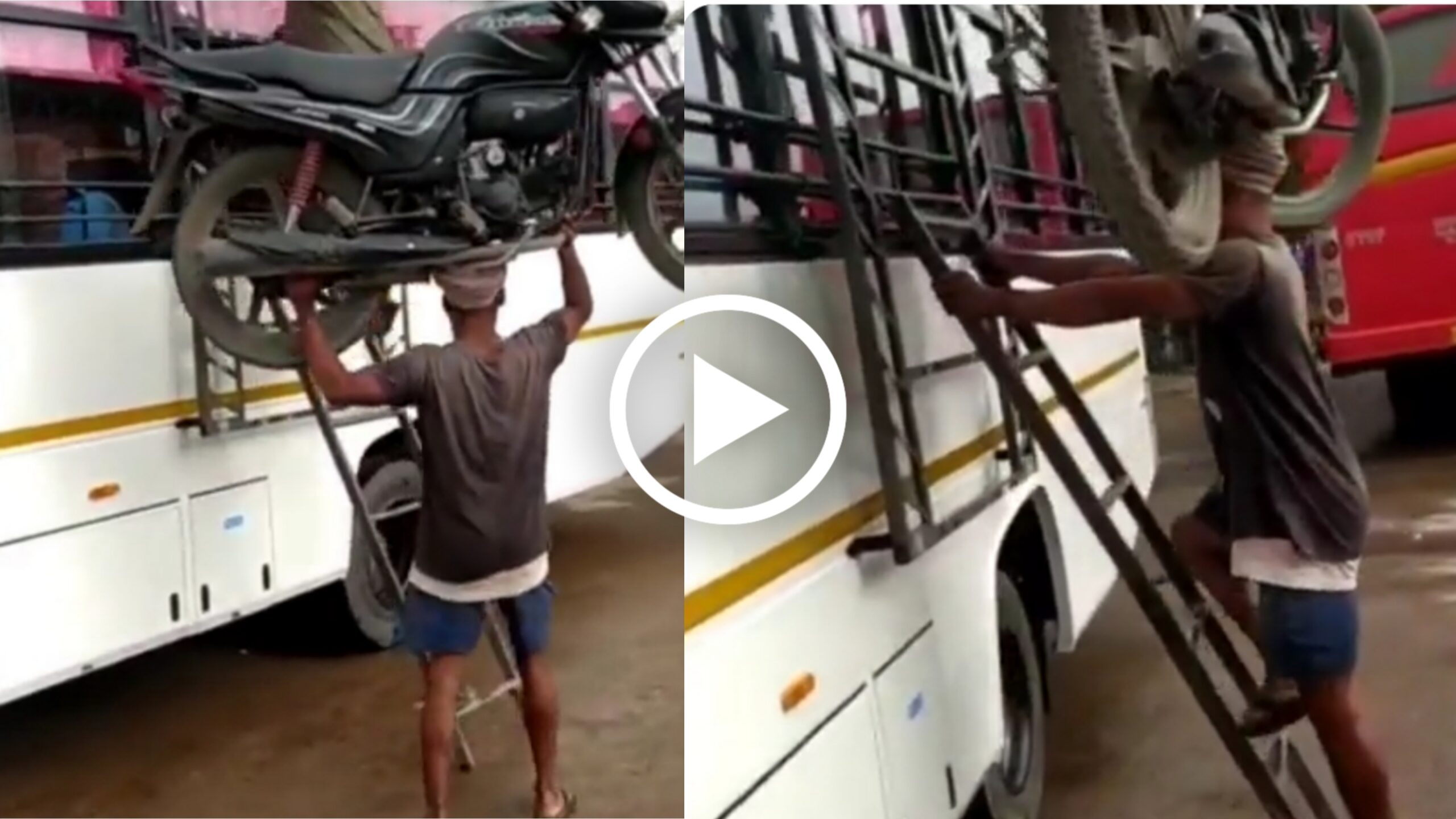 Viral Video: ರಿಯಲ್ ಬಾಹುಬಲಿ ಅಂದರೆ ಈತನೇ ನೋಡಿ, ಬೈಕ್ ತನ್ನ ತಲೆಯಮೇಲಿಟ್ಟುಕೊಂಡು ಎರಡು ಕೈಗಳನ್ನು ಬಿಟ್ಟು ಬಸ್ಸಿನ ಮೇಲೆ ಹತ್ತಿದ ವ್ಯಕ್ತಿ!!